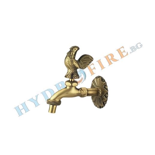 Декоративната спирателна канела с дизайн „Петел“ е изработена от масивен месинг, който осигурява здравина и дълготрайност. Уникалният декоративен елемент във форма на петел придава на инсталацията класически и стилен външен вид. Продуктът е създаден с цел съчетаване на функционалност и естетика, като е подходящ както за водопроводни инсталации, така и за декоративни решения. Предлага се в размер 1/2″.