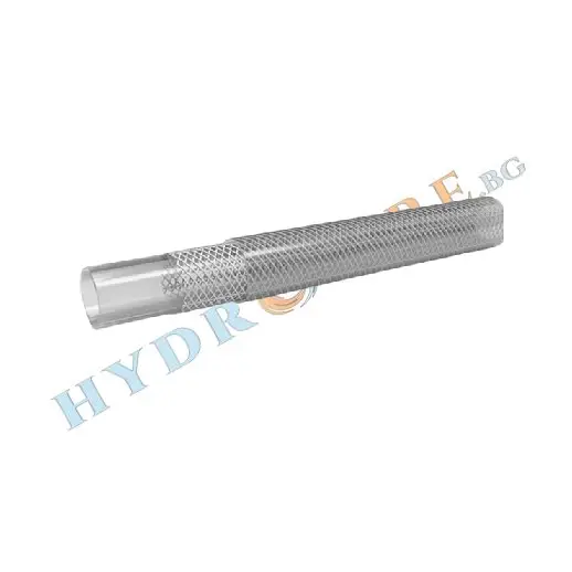 Подсилен с текстилна оплетка, той предлага висока устойчивост на налягане, без да се прегъва или деформира при употреба. Благодарение на прозрачността си, позволява визуален контрол на преминаващите течности, което е особено важно при контролирани процеси. Материалът е устойчив на UV лъчи, химикали и температурни колебания.