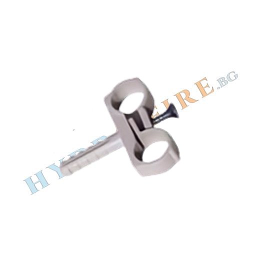 Сивата двойна скоба за пластмасова тръба с дюбел е проектирана за закрепване на две тръби с диаметър Ф 16 или Ф 20. Тя осигурява стабилно и лесно монтиране на тръбите към стената, благодарение на дюбела за бързо и сигурно фиксиране. Скобата е идеална за различни инсталационни системи, като водопроводни, отоплителни или климатични, и гарантира дълготрайност и естетически вид.